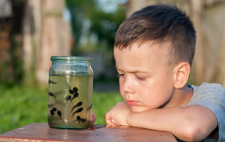 Vom Frosch-Ei bis zum ausgewachsenen Frosch ist es noch ein langer Weg. Den schwimmen und hopsen die Froschkinder alleine, ohne Mutter – wie bei den meisten Nicht Säugetieren. Nach einer Woche schlüpfen die Kaulquappen aus. Dann wuselt es nur so im Teichwasser! Aus einer Kaulquappe entwickelt sich dann innerhalb von drei bis vier Monaten ein ausgewachsener Frosch. Erst wachsen der Kaulquappe vier Beine und sie kann sogar an Land atmen. Später wirft das Fröschchen den Schwanz ab und kann stattdessen mit seinen Hinterbeinen durchs Wasser schwimmen.