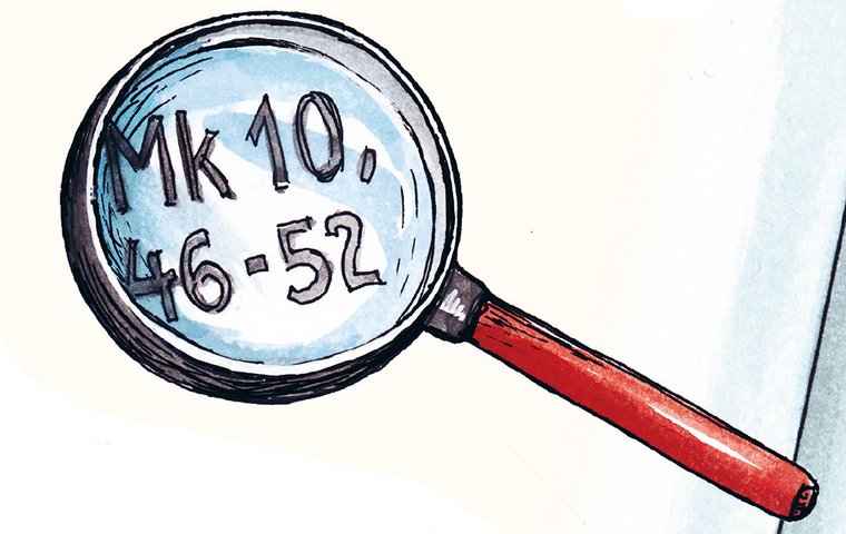 Was bedeutet Markus (kurz: Mk) 10, 46-52? Damit findest du ganz schnell eine Stelle in der Bibel. Such im Inhaltsverzeichnis das Buch Markus und schlag es auf. Dann suche dort die (dicke) Kapitelnummer 10 und die (winzigen) Versnummern 46 bis 52. Alles klar? Wenn du die Geschichte vom blinden Bartimäus gefunden hast, dann hast du gute Detektivarbeit geleistet!