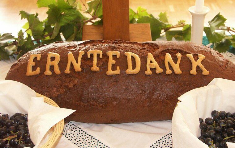 Gesegnetes Brot: In allen Religionen dankt man deshalb für eine gute Ernte. Jedes Jahr am ersten Sonntag im Oktober feiern wir das Erntedankfest. Am Abend davor wird der Altar mit Broten, mit Getreide-Ähren, mit Mehl, mit Äpfeln und Weintrauben geschmückt. Wir danken Gott, der die Menschen so reich beschenkt. Die Erntegaben sind ein Zeichen für das gute Leben – ein Zeichen, dass Gott gut für uns sorgt. Nach dem Gottesdienst gibt es meist ein fröhliches Fest, und das Essen wird geteilt.