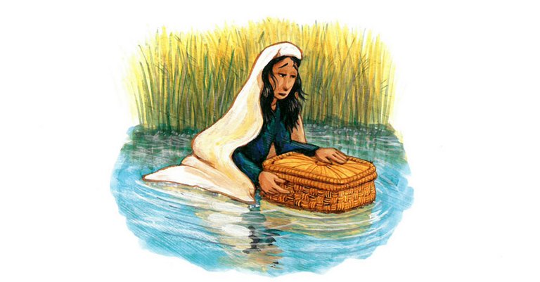 Eine Frau geht heimlich durch das Schilf. Die Schilfhalme sind hoch. Sehr hoch und das ist gut so, denn die Frau will nicht gesehen werden. Hat jemand beobachtet, dass die Halme sich bewegen? Vorsichtig geht die Frau weiter in Richtung Wasser. Sie will hinunter an den Fluss. Mit einem Messer hackt sie einen Weg durch das Schilf. Ritsch, ratsch, fallen die Halme und rascheln unter den Füßen. Die Frau trägt einen großen, eckigen Korb. Darin hat sie das Wertvollste versteckt, das sie auf der Welt besitzt.